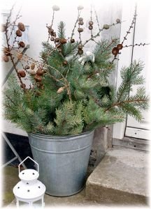 • Kdo nemáte koně v luxusnějších stájích, ale bydlíte společně v tradičním farmářském stylu, určitě využijte k výzdobě i prosté motivy: například stájové plechové vědro, staré a zprohýbané, coby zdobný prvek poslouží výborně, stačí pár borovicových větví, nějaká ta šiška a venkovní lucerna k dotvoření atmosféry.