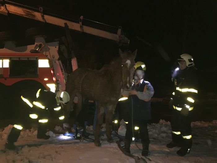 Hasiči přesunuli během necelé hodiny téměř třicetiletého koně na pole, kde led nebyl, a tam už neměla Hvězda s asistencí majitelky problém vstát. Cestu do nedaleké stáje absolvovala s majitelkou po svých. Z pádu vyvázla bez viditelného zranění.