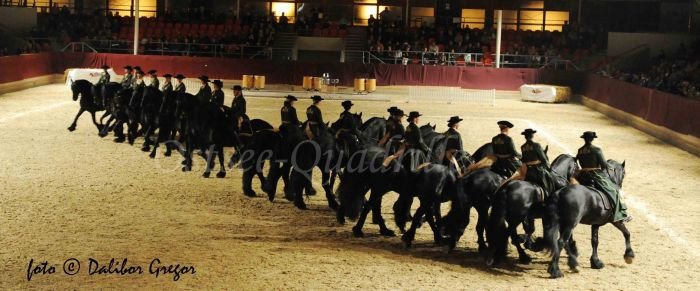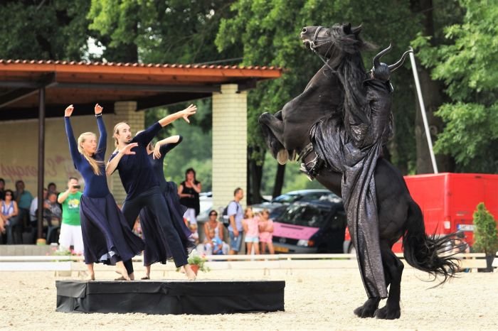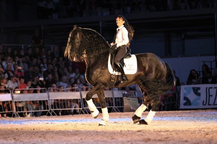 V roce 2014 byl Pieter vybrán pro prezentaci fríských koní za ČR na Eurocheval Offenburg a od roku 2015 vystupoval s německou jezdeckou skupinou Ostsee-Quadrille. S některými jezdci z této skupiny spolupracujeme i nadále. A aby toho nebylo málo – vyzkoušeli jsme s Pieterem i cirkus, vystupovali jsme v cirkuse Carini. Opravdu jsme toho spolu sjezdili víc než dost! 🙂
