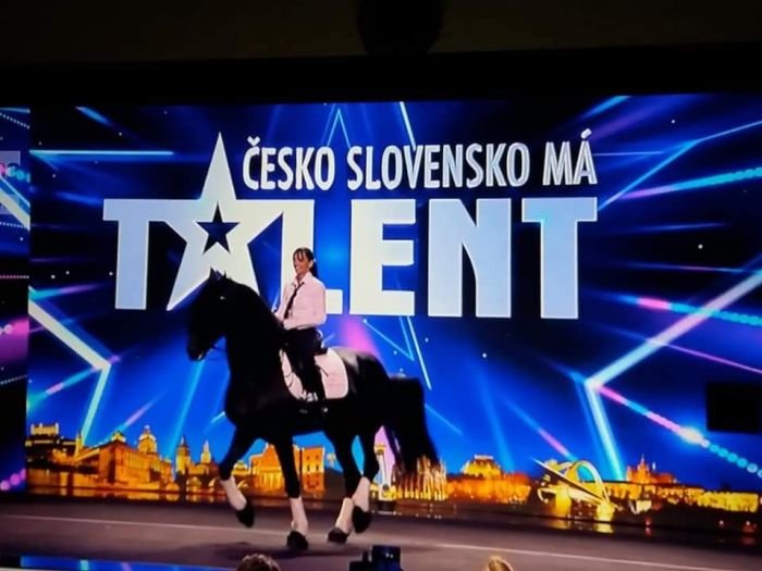 Česko Slovensko má talent! 🙂 Soutěž jsem moc ráda sledovala, užívala jsem si každý ročník. A protože tuhle soutěž mám opravdu ráda, chtěla jsem to prostě také zkusit. Jdeme přece do každé výzvy! 🙂 Bylo to v roce 2018 v Bratislavě. Vystupovali jsme jako poslední kvůli povrchu, který udělali extra pro koně, aby mu to neklouzalo. Celý štáb byl skvělý a užili jsme si i dost legrace 🙂 Vystoupení se povedlo. Potlesk včetně poroty byl ve stoje, tak jsme měli velkou radost. A postoupili jsme dál! 🙂 Moc jsme si to užili, na vše jsou krásné vzpomínky! 🙂