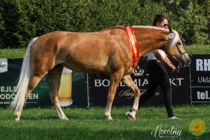 Mezi mladými se prosadil český chovTřída ročních a dvouletých klisen byla bohužel obsazena opět poměrně málo, k čemuž přispělo i to, že chovatelé na výstavu přednostně vzali koně, kteří zároveň závodili v některé ze sportovních disciplín. Nejlepší klisnou této třídy se stala dvouletá America (Amerigo x Nordtirol), dovezená od známé rakouské chovatelky Elisabeth Leitner a aktuálně v majetku rodiny Sixtových. America byla jako jediná v této třídě ve správné výstavní kondici a předvedla velmi pěkný pohyb. Druhé místo po kratším zvažování komise udělila opět původem rakouské klisně Carmenta (Sturmkönig x Wolfgang) v majetku Romana Pokorného, která přes hendikep jednoho chybějícího roku a horší kondice, která je důsledkem její špatné krmitelnosti (u haflinga poměrně vzácný jev) přesvědčila díky typu a utváření přední části těla. Titul nejlepší klisny českého chovu si z Pardubic odvezla díky Adventě ze Sedla (Avalon x Nibelung) Michaela Repková. U této klisny, již odchovala Veronika Tlustá, zazněla pochvala na její pěknou barvu a hlavu.