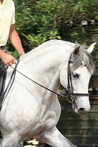 Soňa přivezla bílou vzácnost, andaluzského hřebce. Jeho matka byla prvním koněm plemene PRE v ČR a on je prvním hřebcem tohoto plemene narozeným v ČR (nar. v r. 1998). Kůň se jmenuje Jaleo (o. Vrbino po Barbarroja, m. Jalea VI po Peletero II) a šťastnou majitelkou a chovatelkou je paní Jana Valová, momentálně žijící v Austrálii. Své koně chová na překrásném malém statku ve Východních Čechách, kde je k dispozici venkovní písková jízdárna i hala, a maminka Jalea i její tři potomci tam vedou pohodový koňský život. Samotný Jaleo je talentovaný charakterní kůň, proto prvotní výchovné problémy ze země se Soně podařilo brzo odstranit a nyní se projevuje jako velmi pracovitý a komunikativní hřebec.