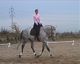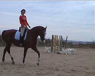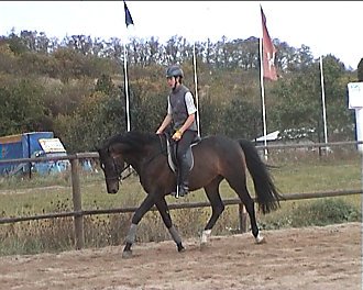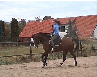 Iva Podsklanová – Hennessy: vyměnila jsi sedlo a zlepšil se ti sed, lépe se pohybuješ s koněm. Nezatáčej vnitřní otěží, proto ti vytrhává vnější, koně víc ohni kolem vnitřní holeně a používej vnější holeň. Kruh zvětšuj přes vnitřní holeň. Přechody dolů dělej bez rukou, jen sedem. Uvolni se.
