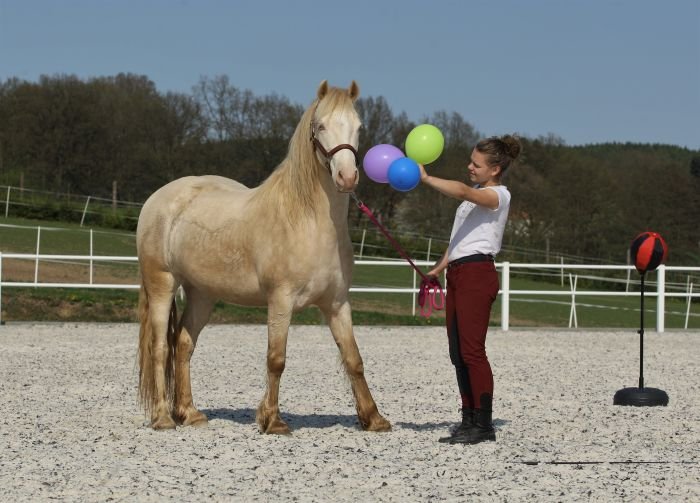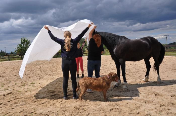 Vystavení koně strach budícím podnětům, situacím, objektům nebo aktivitám v bezpečném prostředí skutečně pomáhá snížit strach a také dlouhodobě snížit snahu koně se všemu, co strach budí, vyhýbat. Systematickým výcvikem tedy opravdu můžeme koně naučit, že určité podněty nebo situace, přestože děsivě vypadají, život ohrožující nejsou. Výcvik ale musí probíhat citlivě a systematicky. A proč to všechno? Protože kůň, který nebude při každém zašumění větru bojovat o život, bude bezpečnější pro svého jezdce a jeho okolí, bude s ním významně jednodušší manipulace a výcvik bude efektivnější, protože se nebudeme potýkat s nepřítelem – distresem.