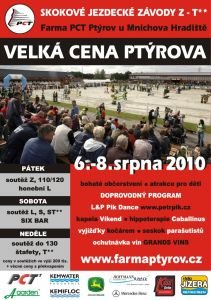 plakátDnes 6. srpna byly zahájeny skokové závody – Velká cena Ptýrova. Páteční den odstartovala soutěž stupně Z na limitovaný čas, ve které startovalo 69 dvojic. S nejlepším časem a čistým kontem zajela dvojice Pavel Hladík a Moment 1. Za mírného deště se dále pokračovalo dvoufázovým skákáním 110/120, ve kterém startovalo 113 jezdců…