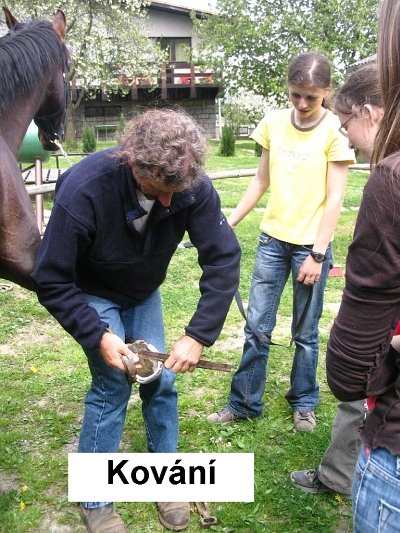 Jelikož překladatelka byla ještě na cestě, hovořilo se zejména v angličtině, ve které i Gérard zahájil své povídání. Společně jsme se věnovali postupně různým koním, dozvěděli jsme se mnoho zajímavých a užitečných informací. Věnovali jsme se hodně podkovám koní, tomu, co je nutné pro každého jezdce a co by podle Gérarda měl bez problémů zvládnout a opravit kdokoli (pro některé z nás překvapující informace – například na výměnu podkováků se většina z nás necítila).