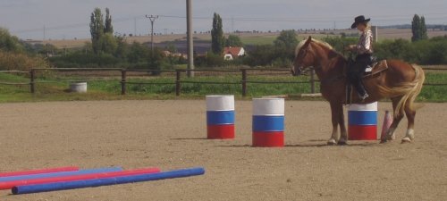 Podobné je to i s chladnokrevníky. Pokud chceme trail brát v tréninku jako zpestření práce pro koně, i velký kůň v něm může nalézt zálibu, a třeba se i v nižších typech soutěží předvést.