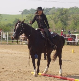 Na snímku vpravo můžeme vidět, jak trailovou úlohu zdolává český teplokrevník.