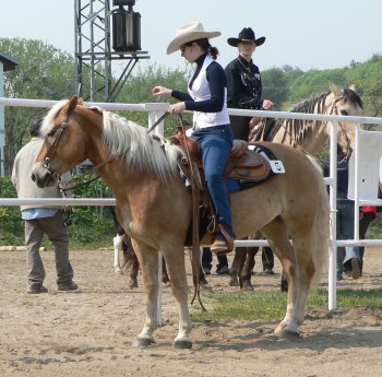 Kůň na obrázku však ukazuje, že ví, co se od něj u branky očekává a pohybuje se podle přání jezdce.