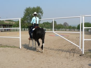 Důležité je, aby kůň přestal couvat přibližně v okamžiku, když se octne jezdec na úrovni otevřeného konce branky.