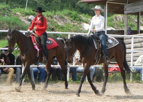 Pro rozhodčího western pleasure znamená v krátkém čase porovnat chody všech koní v aréně. Výrazná chyba rychle posouvá soutěžícího na nižší místo. Nesení hlavy příliš vysoko (kůň jezdkyně v červeném) je chybou, která negativně zaujme na první pohled. Kůň působí dojmem, že je příliš korigován otěží, aby šel pomaleji. Kůň jezdkyně v bílém působí lepším dojmem, přesto by mohla koni ještě mírně povolit otěž, aby si kůň mohl lehce vytáhnout hlavu dopředu do uvolněné polohy.