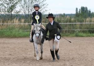 U obou těchto týmů by paní posuzovatelka chtěla vyzdvihnout vynikající práci vodičů, kteří mají velkou zásluhu na správném předvedení obou poníků. Typově byl bližší srdci paní posuzovatelky Russel Pipit. Třetí místo v silné konkurenci vybojovala nejmladší startující ve třídě, teprve tříletá Julie Slavotínková z farmy Sýkorův Mlýn, soutěžící na hřbetě holandské klisny Geppy v.Stal ´T Hulpgat v doprovodu paní Terezy Slavotínkové. Zde kromě jiného paní posuzovatelka ocenila skvělý charakter a temperament klisny Geppy, která má všechny předpoklady pro práci s těmi nejmenšími dětmi.