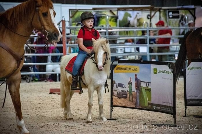 Všechny čtyři dny, tedy od neděle do středy, potěší malé i velké návštěvníky ve velké aréně jezdecké ukázky – ať už jde o předvedení fríských koní, fjordských koní či nově koní islandských. Těšit se můžeme na vozatajské ukázky haflingů, ukázky využití a práce chladnokrevných koní nebo na přirozenou komunikaci a jezdecké vystoupení plemene shagya arab. Milovníky malých koní potěší skoková a vozatajská ukázka minihorse nebo dostih dětí na shetlandských ponících. Připraven je také kůň Valda a jeho psí kousky – komunikace s koněm Valda Team. Jako každou výstavu, ani letos nebudou chybět ochutnávky westernových disciplín s plemeny appaloosa, quarter horse a paint horse. Na přírodních překážkách vystoupí v ukázkách zaměřených na přesnost a harmonii jezdci mountain trailu, kteří předvedou i rychlostní soutěž v jízdě zručnosti – working race.