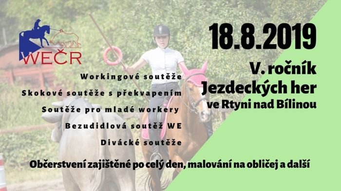V sobotu 17. srpna mohou všichni zájemci o disciplínu WE vyrazit také za vzděláním! Jezdecký spolek Rtyně (Rtyně nad Bílinou) pro vás připravil další WE seminář s koňmi vedený mistrem ČR ve WE 2018 Břetislavem Růžičkou.