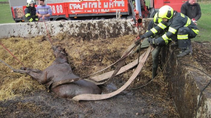 Záchrana tonoucího koně v Uherském Brodě skončila šťastně, hasiči použili zapůjčenou lezeckou techniku