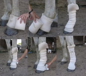 • přikrýt vlhkou gázou a pevným obvazem. Ten se skládá z měkkého vypodložení (vata, ale i ručník nebo poskládané triko) a pružného obinadla, které nikdy nesmí přesahovat přes měkké vypodložení, aby nedošlo k zaškrcení končetiny. Pokud je rána na místě, kde ji nelze zavázat, je třeba ji aspoň trochu chránit před hmyzem a jiným znečištěním.