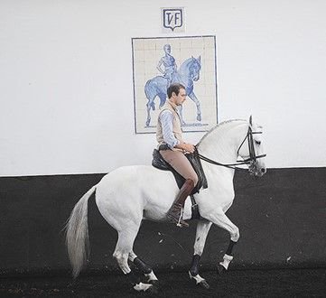 „Máme tři pomůcky – holeň, záda a otěže. Všechno začíná u holení, pak jsou záda a nakonec otěže. To se neděje s odstupem deseti vteřin, je to všechno jeden pohyb. Další věc, na které je třeba pracovat, je kontakt. Mladý kůň se může trochu vyděsit, zvednout krk a rozhlížet se. Když se to stane, nebuďte tvrdí, jen počkejte. Pokud koně vyděsíte, prostě uteče z otěže. V tomto případě je třeba, abyste se snažili, aby kůň zůstal v klidu.“