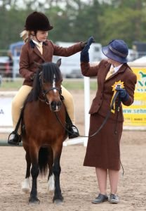 Těchto výstavních tříd se mohou zúčastňovat poníci nejdříve ve svých čtyřech letech. A právě nejmladší pony ve skupině obsadil druhé místo ve třídě. Byl jím letos čtyřletý valach českého chovu Marah Simon s Lindou Dvořákovou, který svůj premiérový start zakončil krásným umístěním. Paní posuzovatelka ocenila zejména jeho kvalitu (exteriér, typ a mechaniku pohybu) a také vhodný temperament a charakter, které jsou nezbytnou výbavou každého dobrého poníka pro začínající děti. Doporučuje však ještě zapracovat na jeho jezdecké přípravě. Velmi těsně třetí se umístil domácí reprezentant – valach Russel Pipit s Luckou Vaňouskovou v sedle, který rovněž obdržel dobré známky za exteriér a typ, ale jeho prezentace pod sedlem byla o stupínek vlažnější, než by bylo třeba. I přes momentální nepříznivé povětrnostní podmínky dokázali první tři umístění v klidu postát v řadě, u ostatních se pak projevila nervozita, která ovlivnila jejich výkony.