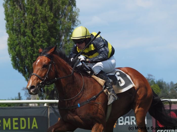 Závěrečný dostih odpoledne byla Cena Dostihového spolku a.s. (Stchcc, V. kat, 3 300 m, pro 5leté a starší koně). Po startu se na čele chvíli objevila Shelly, kterou vzápětí vystřídal Byrabay. Před náběhem na travnatý ovál se do popředí propracovala dvojice Norino a pozdější vítěz Bukhari (ž. Sertash Ferhanov, tr. Wroblewski Grzegorz, TVD a.s.). Druhý doběhl Maximus před Trivero, Stigris a na Norino zbylo až páté místo.