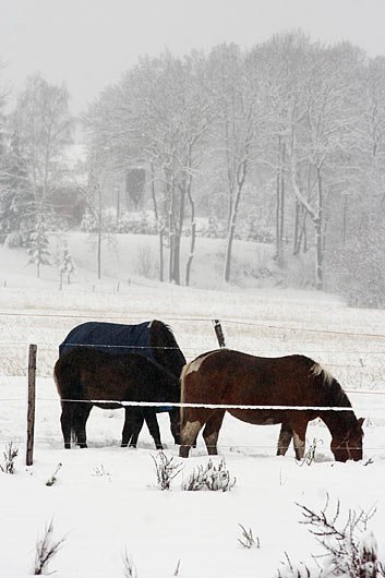 Termín byl dohodnutý na 12.11. S redaktorem časopisu Jezdectví, Josefem Malinovským, jsme ráno vyrazili z Prahy, netuše, jak dobrodružnou budeme mít cestu, neboť Liberecko nás přivítalo sněhovou nadílkou. Horší než zasněžené silnice ale byly stromy, které neunesly tíhu prvního sněhu a některé se poroučely na silnici. Naštěstí se nám je podařilo za zlověstného skřípotu a naklánění dalších obtěžkaných odtáhnout natolik, že jsme mohli pokračovat v cestě. Vzápětí jsme se dozvěděli od MVDr. Hrnčiříka nemilou novinu. Kontrola KVS se pro počasí a špatný stav silnic odkládá. Povzdechli jsme si nad nedostatkem elementární lidské slušnosti, která velí informovat co nejdříve druhou stranu, ruším-li domluvenou schůzku, a pokračovali dále do Rolinky.