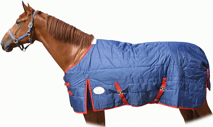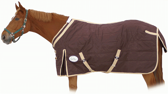 • vyrobena z pevného materiálu 600 DNR nepromokavého do 3000 mm vodního sloupce a zároveň prodyšného, který předurčuje deku pro použití do výběhu i do stáje