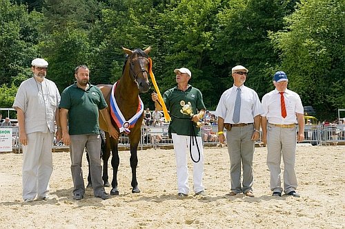 Šampión výstavy 3672 Furioso XXX Frodo a hodnotiľská komisia.